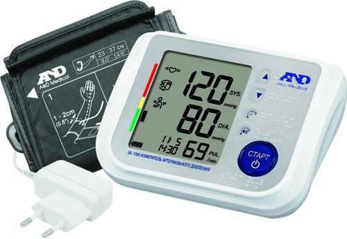 A&D Тонометр автоматический UA-1300 с голосовым помощником, шрифтом Брайля, интеллектуальным управлением, сетевым адаптером, стандартной манжетой 23–37см