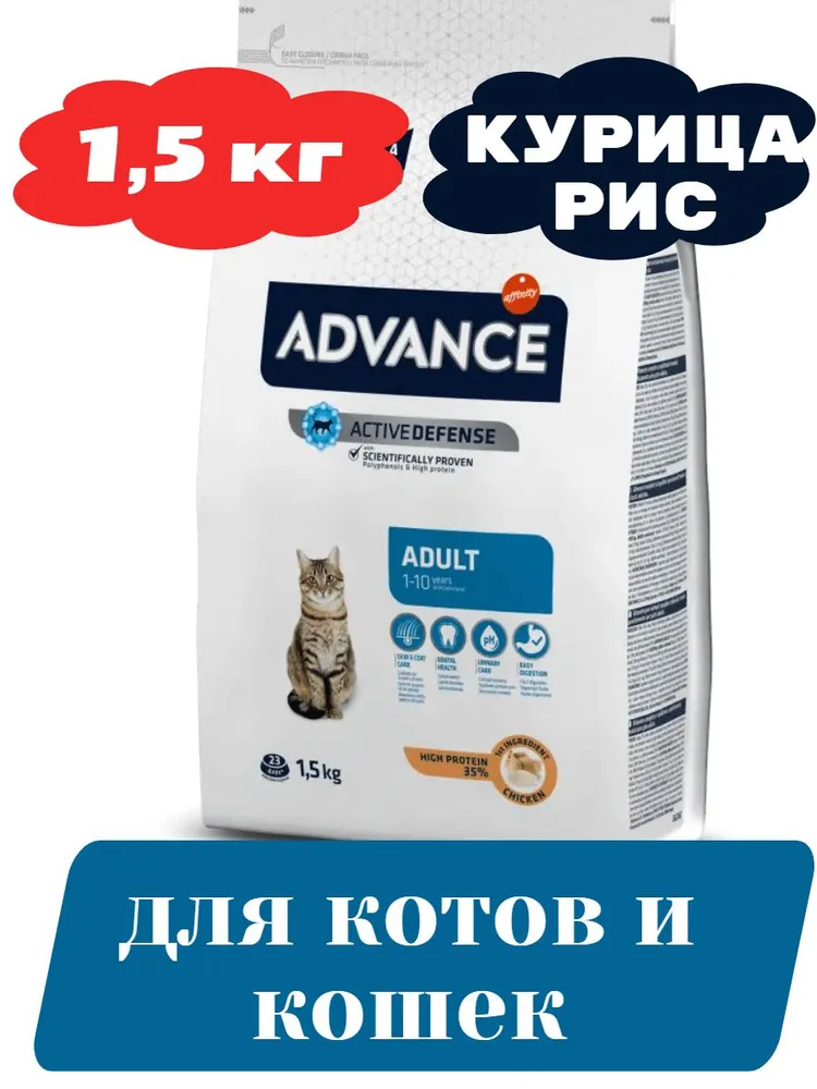 Advance Cat Adult (Курица и рис) — это высококачественный сбалансированный полнорационный корм для взрослых кошек от 1 до 10 лет, который содержит все необходимые вещества для поддержания хорошей физической формы.
