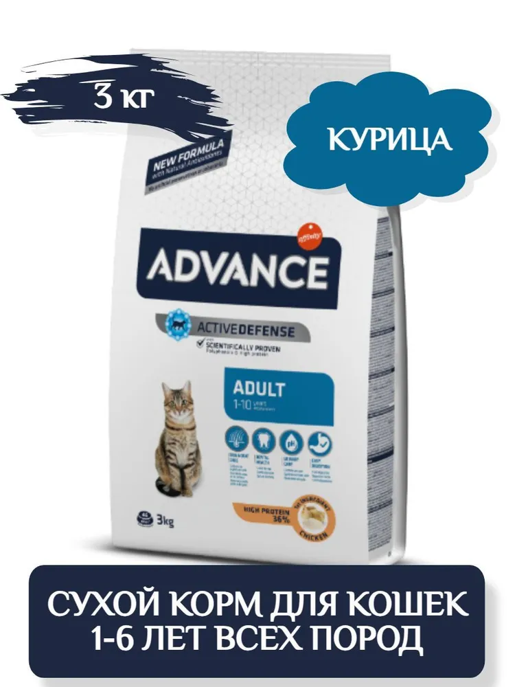 Advance Cat Adult (Курица и рис) — это высококачественный сбалансированный полнорационный корм для взрослых кошек от 1 до 10 лет, который содержит все необходимые вещества для поддержания хорошей физической формы.