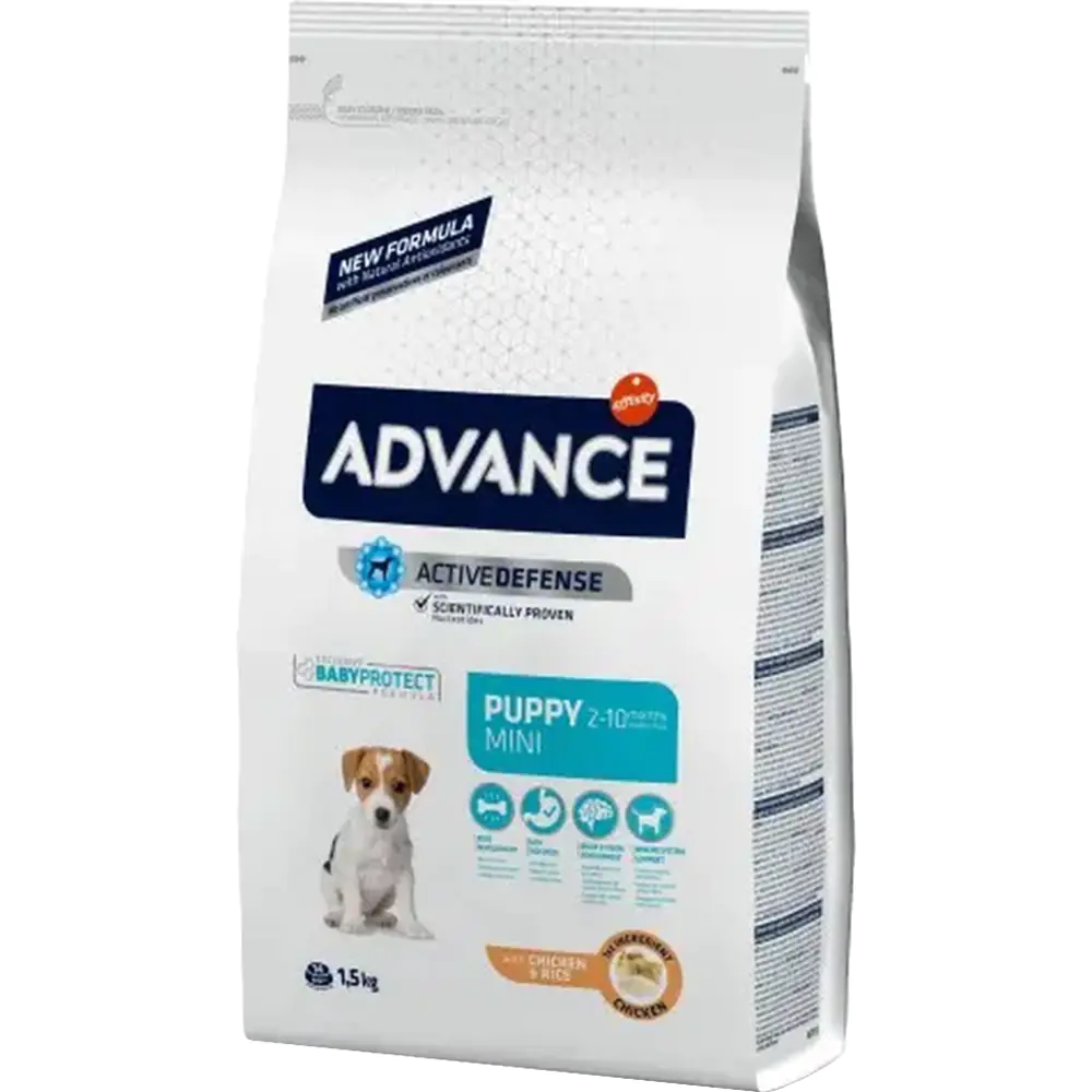 Advance Dog Puppy Protect Mini - это высококачественный сбалансированный корм, специально разработанный для щенков (от 2 до 8 месяцев) мини-пород (вес взрослой собаки до 10 кг), а также для беременных и кормящих собак.
