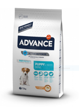 Advance Dog Puppy Protect Mini - это высококачественный сбалансированный корм, специально разработанный для щенков (от 2 до 8 месяцев) мини-пород (вес взрослой собаки до 10 кг), а также для беременных и кормящих собак.