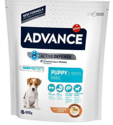 Advance Dog Puppy Protect Mini - это высококачественный сбалансированный корм, специально разработанный для щенков (от 2 до 8 месяцев) мини-пород (вес взрослой собаки до 10 кг), а также для беременных и кормящих собак.
