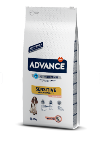 Advance Dog Sensitive Salmon&Rice - это корм премиум-класса, рекомендованный для взрослых собак средних и крупных пород с непереносимостью мясного белка и других ингредиентов, часто ассоциируемых с чувствительной системой пищеварения.