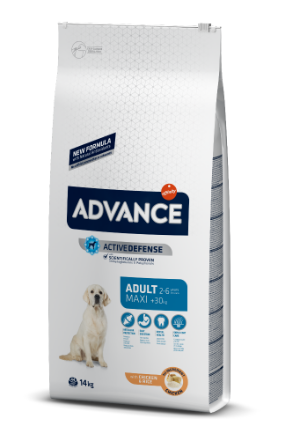 Advance Dog Maxi Adult - это высококачественный сбалансированный полнорационный корм для взрослых собак (в возрасте от 2 - 6 лет) крупных пород (вес взрослых животных более 30 кг).