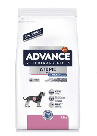Advance Dog VetDiet Atopic Mini – это полный диетический продукт для собак мелких пород, составленный для ухода за кожей вашей собаки, если она имеет дерматит и избыточную потерю шерсти, и для снижения непереносимостей к ингредиентам и питательным веществам.
