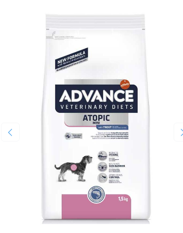 Advance Dog VetDiet Atopic Mini – это полный диетический продукт для собак мелких пород, составленный для ухода за кожей вашей собаки, если она имеет дерматит и избыточную потерю шерсти, и для снижения непереносимостей к ингредиентам и питательным веществам.