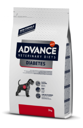 Advance Dog VetDiet Diabetes - это это полноценный диетический продукт для взрослых собак, разработанный для контроля снабжения глюкозой (сахарный диабет) и противодействия нарушению пищеварения, обеспечивая низкий уровень углеводов с быстрым высвобождением, легкоусвояемых ингредиентов и пониженным уровенем жира. Его высокое содержание растворимых волокон облегчает кишечный транзит и стимулирует дружественную кишечную флору. Кроме того, его низкокалорийная формула помогает контролировать вес вашей собаки.