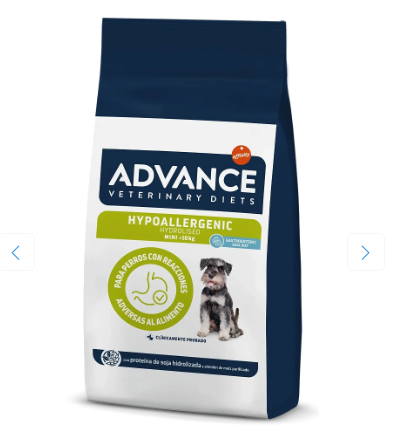 ADVANCE VETERINARY DIETS Hypoallergenic Mini — это клинически проверенный полноценный диетический корм для взрослых собак миниатюрных пород, состоящий из 100% белка гидролизованной сои с очень низкой молекулярной массой в качестве единственного источника белка и очищенного крахмала в качестве единственного источника углеводов, облегчает пищеварение собак, страдающих от пищевой аллергии и непереносимости, и снижает риск возникновения побочных реакций на корм. Кроме того, благодаря гипоаллергенной оболочке, он имеет прекрасный вкус для длительного кормления.