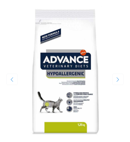 Advance VetDiets Cat Hypoallergenic – гипоаллергенный полнорационный диетический корм для взрослых кошек, созданный для снижения непереносимости ингредиентов и питательных веществ и содержащий гидролизованные источники белка и выбранные источники углеводов.