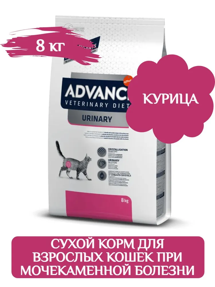 Advance VetDiet URINARY — специализированная ветеринарная диета для взрослых кошек с проблемами мочеиспускания. Корм помогает поддерживать здоровье мочевыводящей системы, предотвращает образование струвитных камней и обеспечивает полноценное питание для кошек, склонных к мочекаменной болезни.