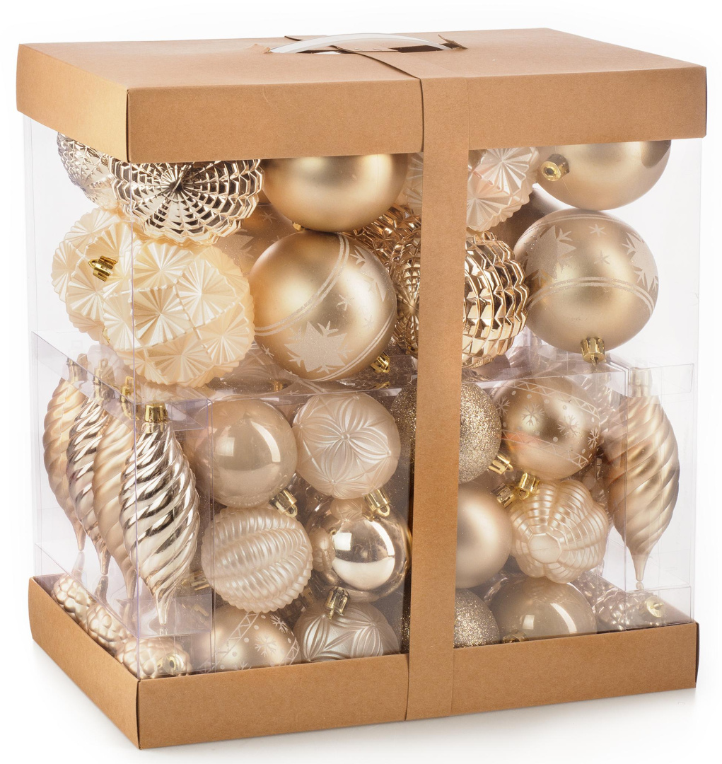 В набор входят игрушки разных форм, что позволяет оформить ёлку объёмно и интересно без подбора отдельных элементов. Mix по форме создаёт визуальный баланс и делает декор более динамичным.