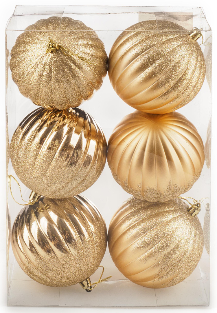 Новогодние шары: 6 шт. (диаметр 10 см, цвет жёлтый).