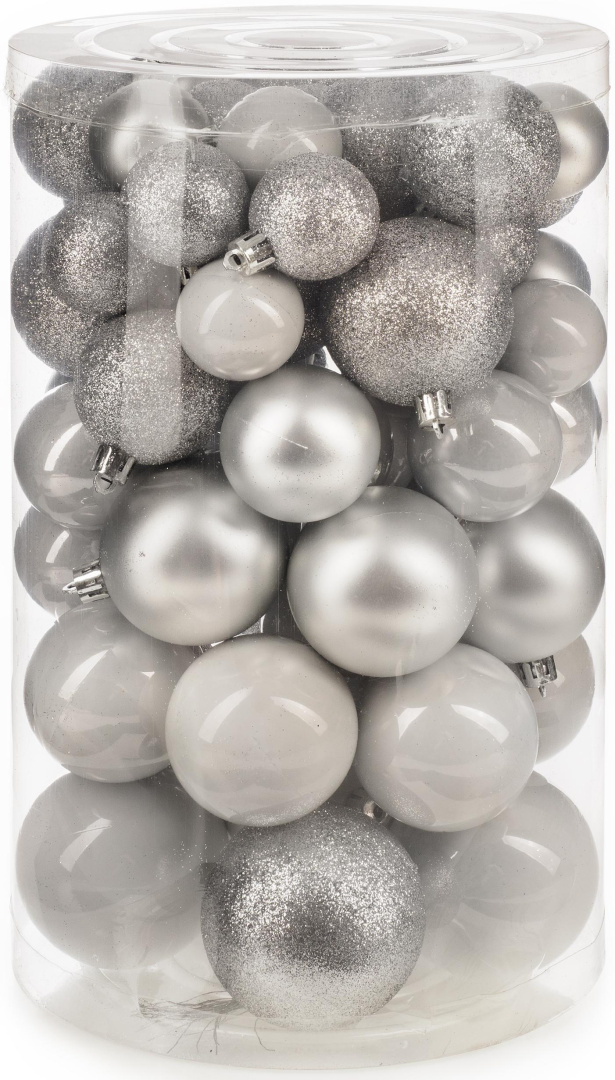 Количество и цвет: 60 шаров с серебряным металлизированным или глянцевым покрытием.