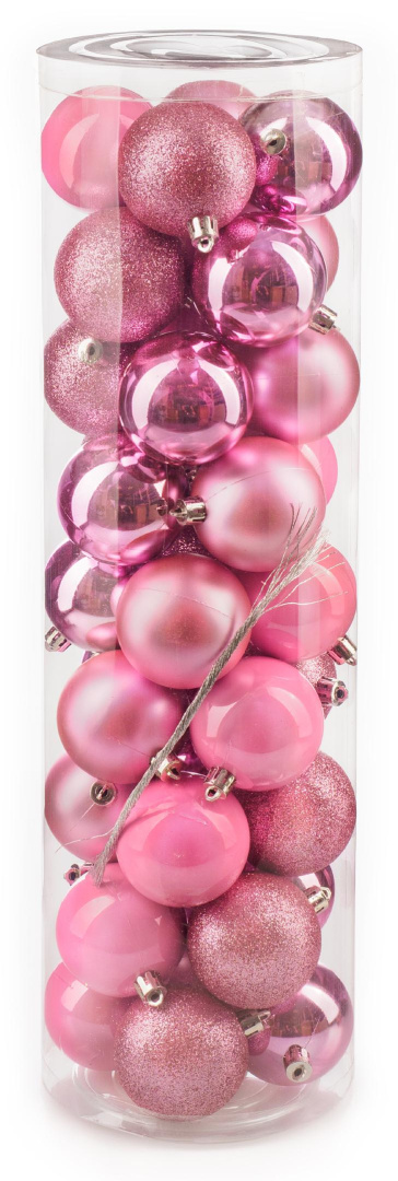 Новогодние шары: 36 шт. (диаметр 6 см, цвет розовый).