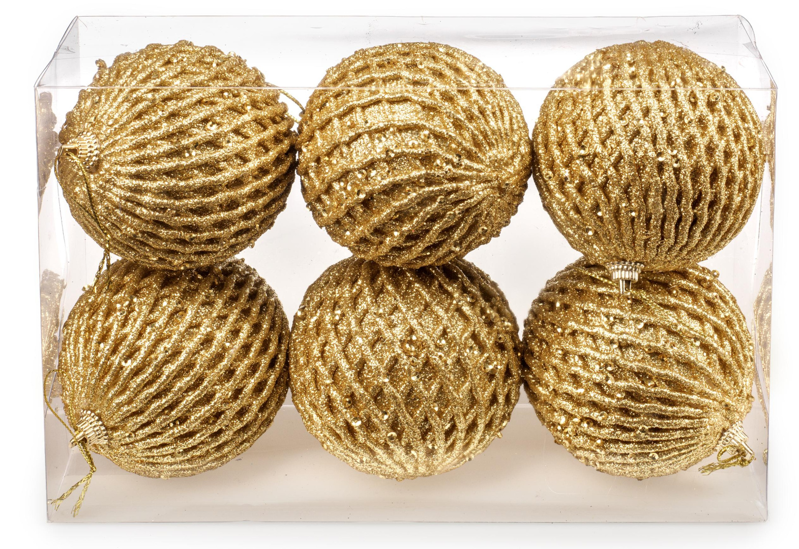 Новогодние шары с декором: 6 шт. (диаметр 8 см).