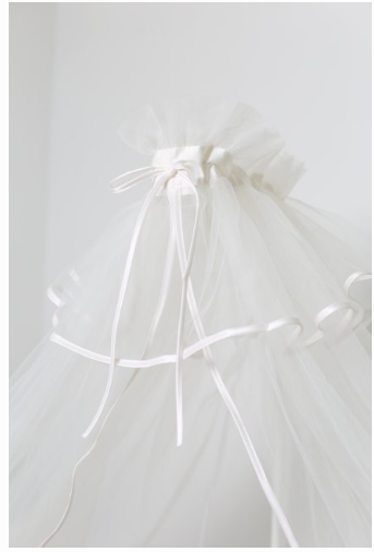 Этот балдахин изготовлен из нежного фатина (специальный материал для фаты невесты), а шелковистая тесьма и кулиска для шнурка выполнены из тканей компаньонов, подходящих к большинству комплектов Lappetti.