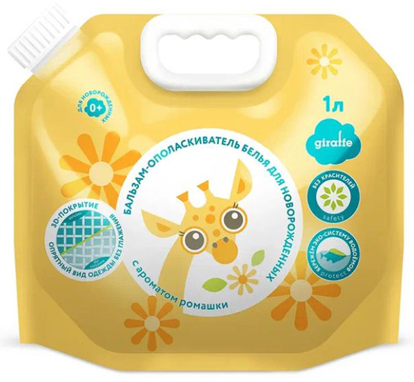 Антибактериальный бальзам - ополаскиватель для белья Giraffe смягчит все внутренние швы на ползунках, распашонках, бодиках, колготках, носочках. Повысит качество стирки, продлит срок службы изделий.