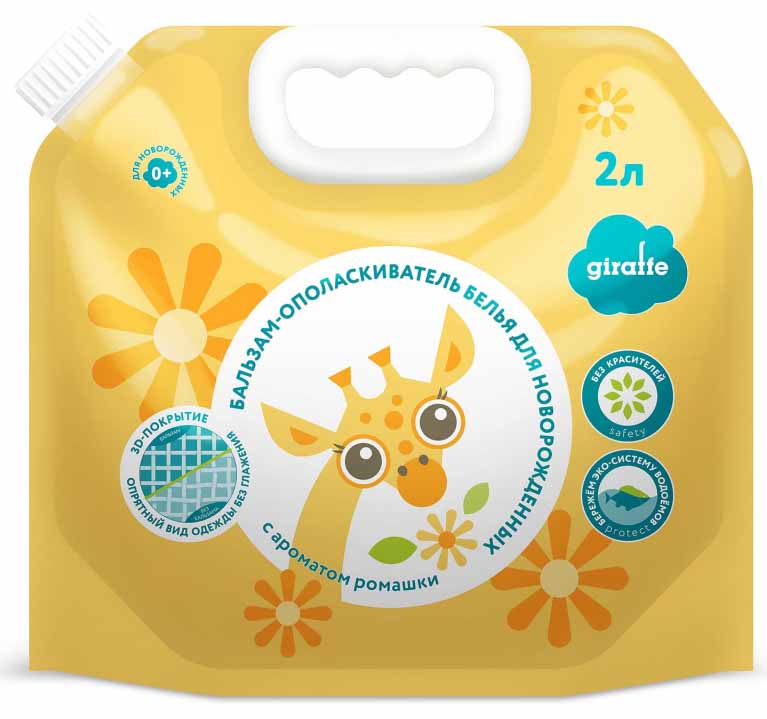 Антибактериальный бальзам - ополаскиватель для белья Giraffe смягчит все внутренние швы на ползунках, распашонках, бодиках, колготках, носочках. Повысит качество стирки, продлит срок службы изделий.