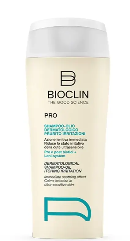 Дерматологический шампунь-масло от зуда и раздражения Bioclin PRO создан на основе сверхмягкой очищающей основы и специальных активных ингредиентов для снятия зуда и раздражения. Он восстанавливает естественный барьер сверхчувствительной кожи головы. Благодаря приятно пенящейся маслянистой текстуре и нежному аромату волосы становятся легкими, мягкими и блестящими.