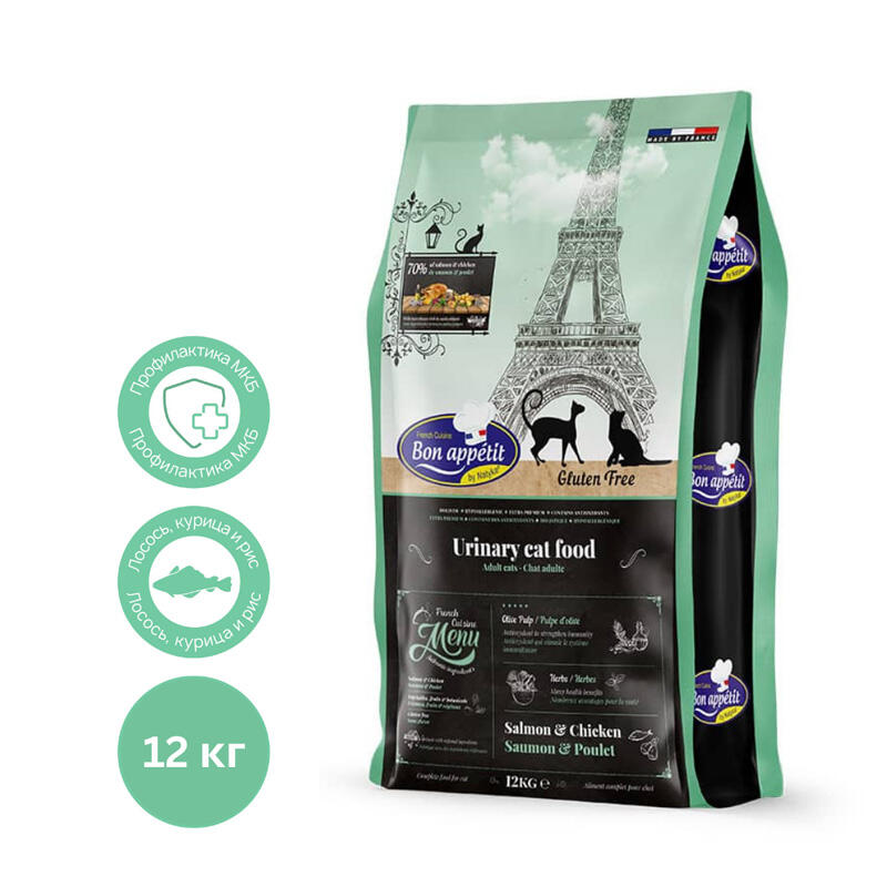 Bon Appétit Adult Sterilised - корм для стерилизованных кошек супер-премиум класса, вдохновленный изысканной французской кухней. Корм содержит: 43% курицы и лосося, натуральные витамины и минералы, безопасные углеводы. В составе пониженное содержание магния и фосфора для профилактики мочекаменной болезни, а так же оптимальный баланс жира и белка для профилактики лишнего веса. Назначение: профилактика МКБ, контроль веса, поддержание оптимальной мышечной массы, снижение воспаления мочевыделительной системы, забота о пищеварении, профилактика глютеновой непереносимости. Возраст: для взрослых кошек старше 1 года. Допускается использование в качестве основного рациона котятам от 8 месяцев после проведения процедуры стерилизации.