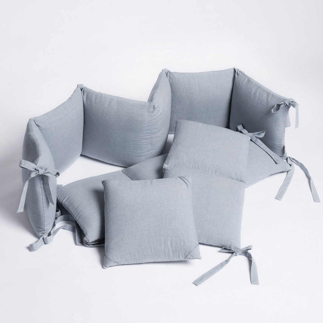 Универсальные двусторонние бортики 360х29 см, состоят из 4-х частей: полуборт из 6-ти подушечек, одна отдельная и по одной части из 2-х и 3-х подушечек.