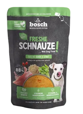 Bosch Freshe Schnauze Индейка с киноа и шпинатом – влажный корм для собак.