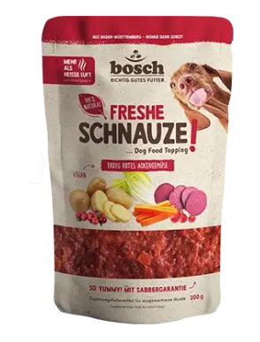 Bosch Freshe Schnauze Topping Красные полевые овощи – свежая овощная начинка как дополнение к ежедневному полноценному питанию.