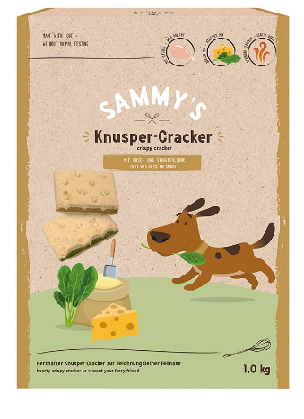 Bosch Sammy's Cracker - эти сытные лакомства с сыром хороший источник энергии. Забавные уголки из нежной домашней птицы и пшеничной муки высшего сорта с большим количеством сыра или шпината.