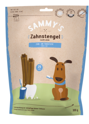 Форма гибкой зубной палочки Сэмми побуждает вашу собаку жевать, можно удалить остатки пищи и предотвратить образование зубного камня. При ежедневном кормлении можно уменьшить образование зубного налета и нового зубного камня. Для неотразимо сияющей улыбки. Вкусная жевательная резинка с низким содержанием жира для больших и маленьких собачьих пород, производится аккуратно, без добавления сахара - идеально подходит для ежедневного ухода за зубами.