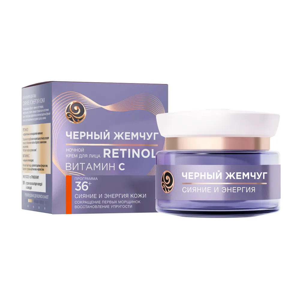 Черный Жемчуг ночной крем для лица программа от 36 лет 50мл. Ночью кожа нуждается в качественном уходе, направленном на восстановление и регенерацию. Именно такой уход сочетает в себе ночной крем бренда Черный Жемчуг. Ретинол и Витамин С, усиливая друг друга в формуле, эффективно стирают следы усталости и борются с первыми возрастными изменениями.