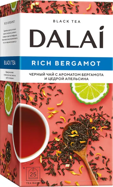 Подарите себе наслаждение мягким вкусом черного чая с бергамотом с DALAI Рич Бергамот, чтобы каждое чаепитие стало моментом расслабления и гармонии.