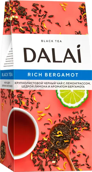 Подарите себе черный крупнолистовой чай с бергамотом и лимоном, чтобы каждое чаепитие стало ароматным, бодрящим и насыщенным с DALAI Rich Bergamot.