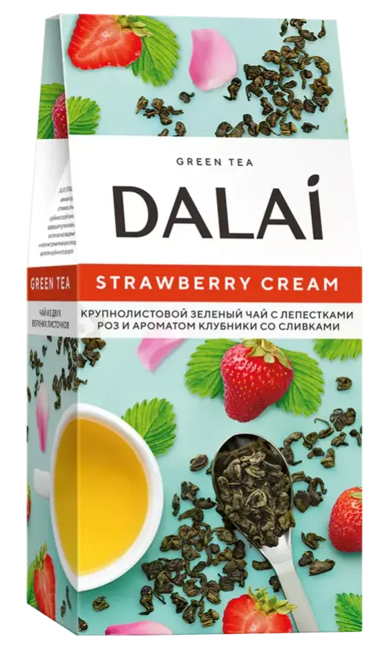 Подарите себе зеленый крупнолистовой чай с клубникой и сливками, чтобы каждое чаепитие стало ароматным, бодрящим и вкусным с DALAI Strawberry Cream.