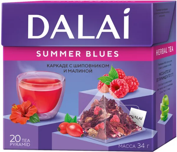 Подарите себе травяной чай с каркаде, малиной и шиповником, чтобы каждое чаепитие превращалось в мгновения удовольствия и гармонии с DALAI Summer Blues.