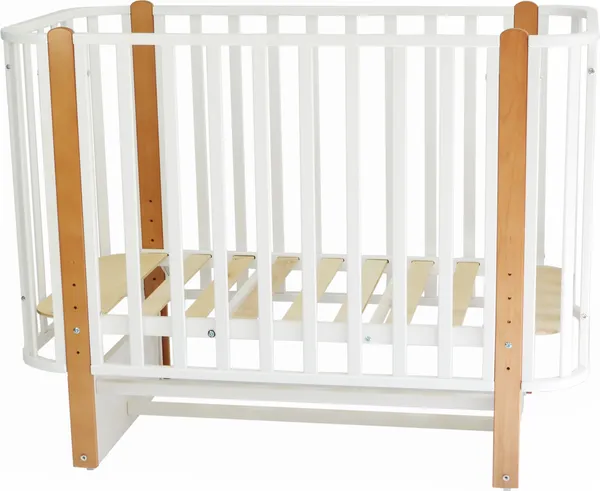 Кроватка выполнена из натурального дерева, что гарантирует прочность, устойчивость и экологичность.