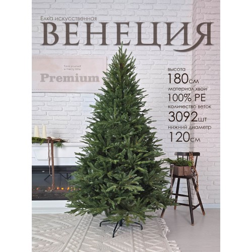 Создайте праздничную атмосферу с искусственной елкой Венеция Премиум высотой 1,8 метра. Эта элегантная елка станет стильным украшением вашего дома и привнесёт уют в зимние праздничные дни.
