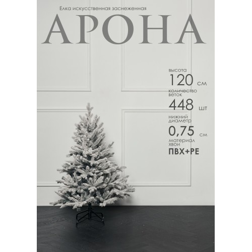 Ель новогодняя Arona высотой 1,2 метра завораживает своим изяществом. Пышная заснеженная хвоя и прочное основание создают эффект зимней сказки прямо в вашем доме. Эта искусственная елка станет украшением квартиры, детской комнаты или небольшого офиса.