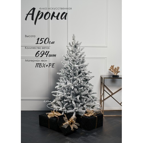 Ель новогодняя Arona высотой 1,5 метра завораживает своим изяществом. Пышная заснеженная хвоя и прочное основание создают эффект зимней сказки прямо в вашем доме. Эта искусственная елка станет украшением квартиры, детской комнаты или небольшого офиса.