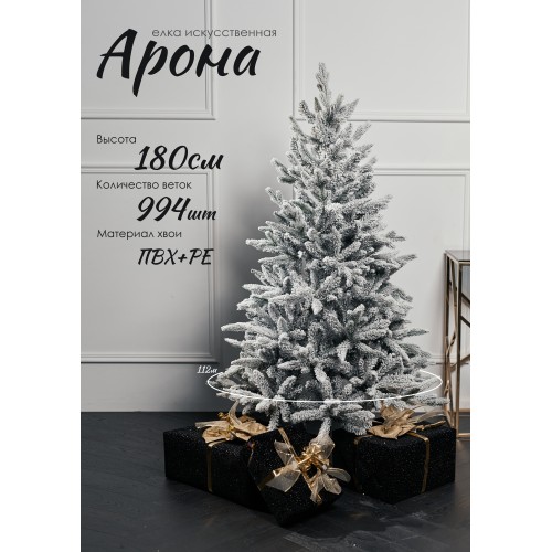 Ель новогодняя Arona высотой 1,8 метра завораживает своим изяществом. Пышная заснеженная хвоя и прочное основание создают эффект зимней сказки прямо в вашем доме. Эта искусственная елка станет центральным украшением комнаты, квартиры или офиса.