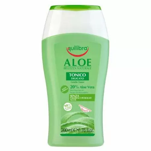 Equilibra Aloe Tonic - нежная, легкая и не содержащая спирта жидкость на основе 100% чистого алоэ вера и провитамина B5. При ежедневном использовании удаляет все следы загрязнения и макияжа без необходимости смывания, оставляя кожу гладкой и упругой.
