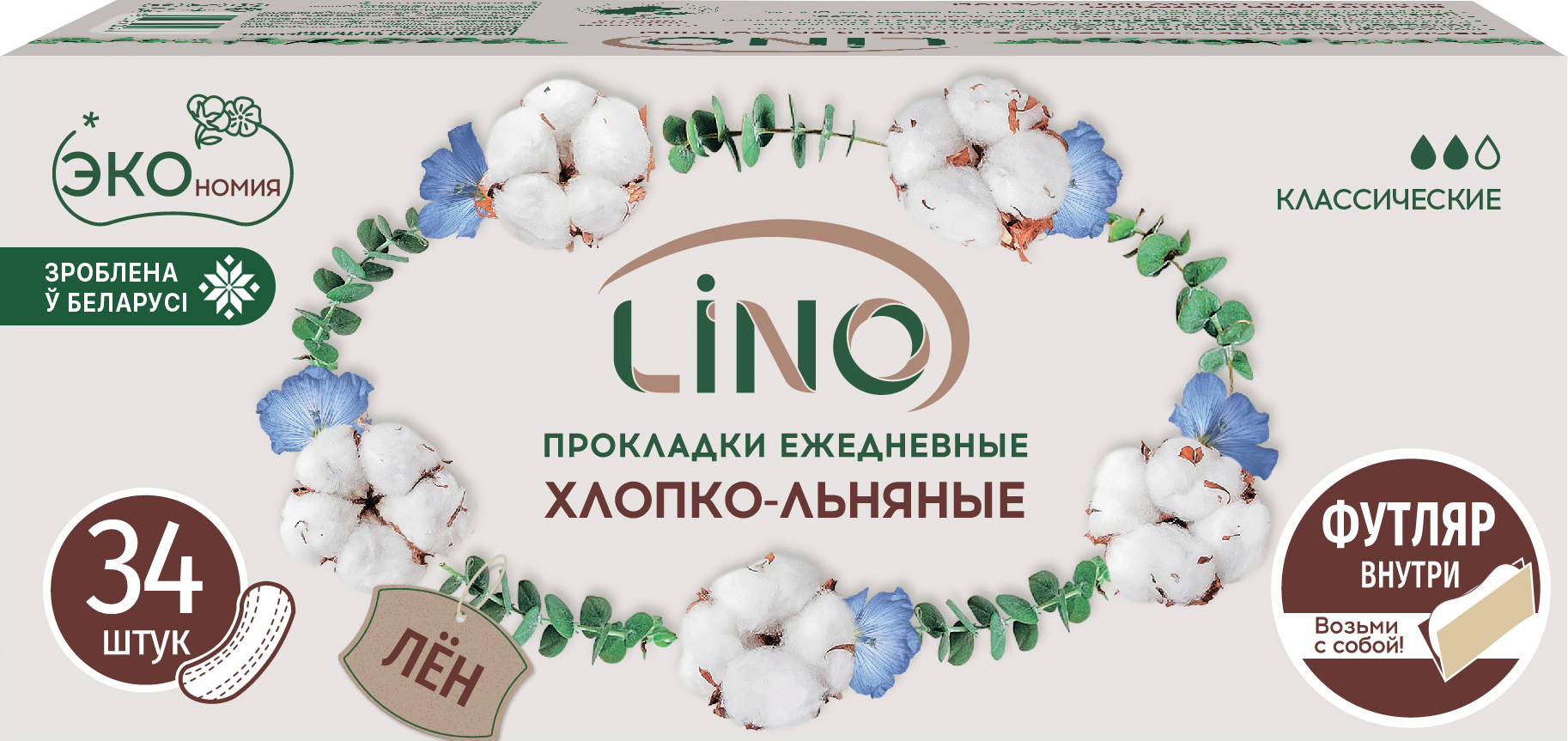 LINO — Хлопко-Льняные Ежедневные Прокладки 0,9 мм с Индивидуальным Многоразовым Футляром