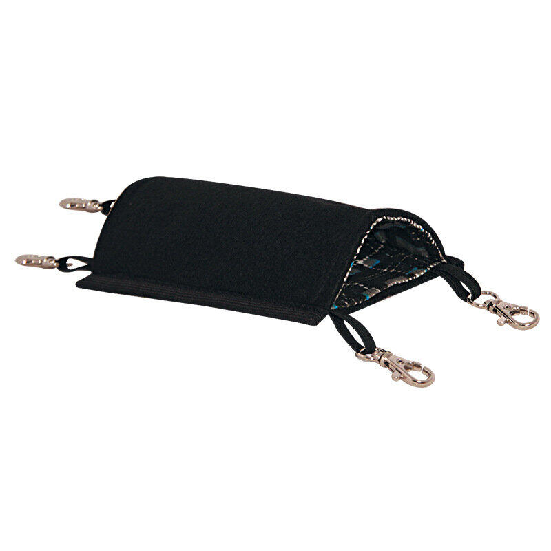 Оборудован четырьмя прочными карабинами, при помощи которых его можно зафиксировать в необходимом положении внутри клетки любых габаритов.