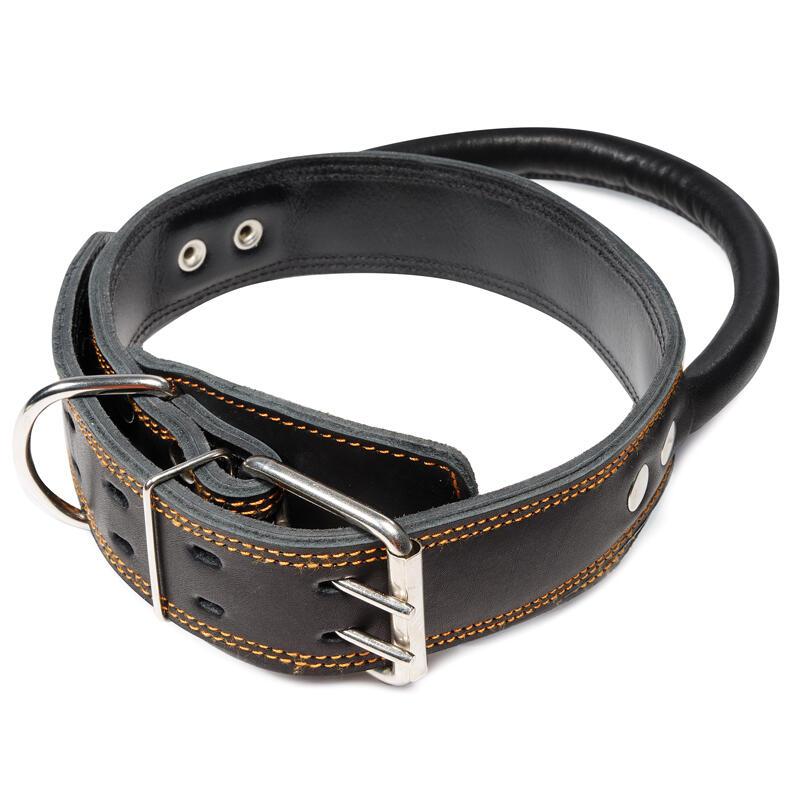 Ошейник кожаный с круглой ручкой,760*45мм — это эластичный и надёжный аксессуар для вашего питомца. Изделие выполнено из прочной двухслойной кожи с использованием крепкой металлической фурнитуры. Данная амуниция может служить как для дрессировки, так и для обычных прогулок в парке. Размер изделия: 760*45мм Цвет: черный, коричневый.