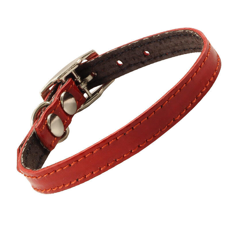 Кожаный ошейник - для небольших собак. Однослойное изделие выполнено из прочной цветной кожи высокого качества с использованием крепкой металлической фурнитуры в виде бабочки (75х43мм). Длину изделия удобно подгонять под индивидуальные параметры животного.
