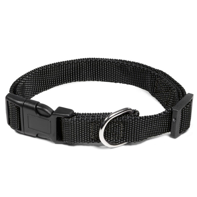 Регулируемый ошейник из нейлона - это полезный и функциональный аксессуар для четвероногих питомцев. Изделие имеет сбоку от застежки удобное кольцо для крепления поводка. Размеры изделия регулируемой длины: 350-550х25мм (размер L). Цвет: черный.