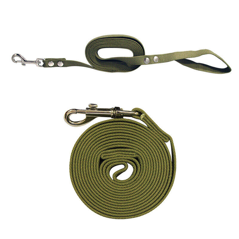 Поводок из брезента длиной 3 метра при ширине 2 см. Поводок применяется для прогулок и дрессировки собаки. Изделие снабжено надежным карабином из высококачественной стали, а специальный переходник позволяет карабину крутиться вокруг своей оси, предотвращая запутывание. На поводке имеется петля, которая одевается на руку для более удобного использования.