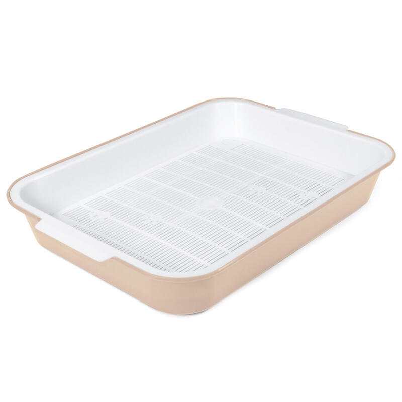 Туалет c белой сеткой - универсальный аксессуар для вашего четвероногого питомца. Такая модель идеально подходит для кошек, не любящих наполнитель. Съемная сетка максимально упрощает уборку, а компактные габариты изделия позволят разместить его где угодно с комфортом для животного. Туалет изготовлен из высококачественного пластика и легко чистится под струет воды при помощи моющих бытовых средств.