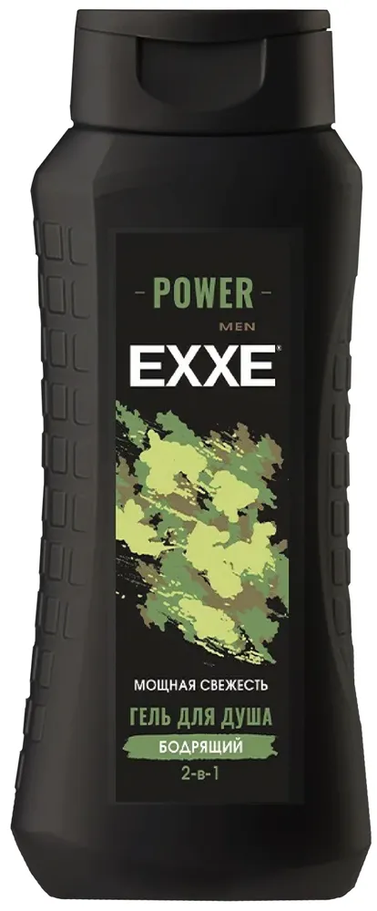 Гель для душа 2в1 Бодрящий POWER EXXE. Современная формула с витаминами А и Е: тщательно очищает кожу, не оставляя ощущение сухости; питает и смягчает кожу; формула 2в1. Возможно использовать как шампунь.
