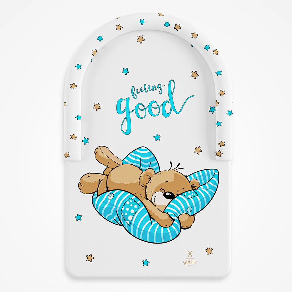 Мягкий бортик-валик в форме подковы поддерживает ребёнка и создаёт ощущение безопасности. Принт «Мишка на подушке» в голубых тонах привлекает внимание малыша и делает процесс пеленания спокойным и приятным.