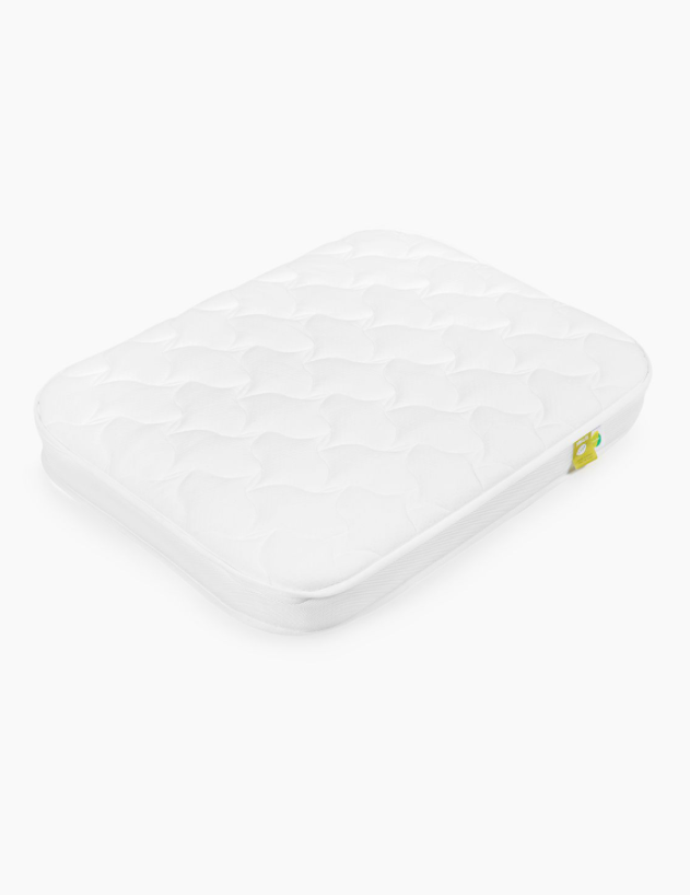 Стеганный двухслойный чехол матраса – съемный, легко стирается в машинке и быстро сохнет. Он изготовлен из уникальной ткани StressFree, обладающей антистатическими свойствами, которые сохраняются после стирки. Верхний слой ткани - 100% хлопок высшего качества, для стежки чехла использован гипоаллергенный материал Hollcon, способный регулировать температуру и сохранять форму. Этот матрас идеально подходит для люльки HappyBaby.